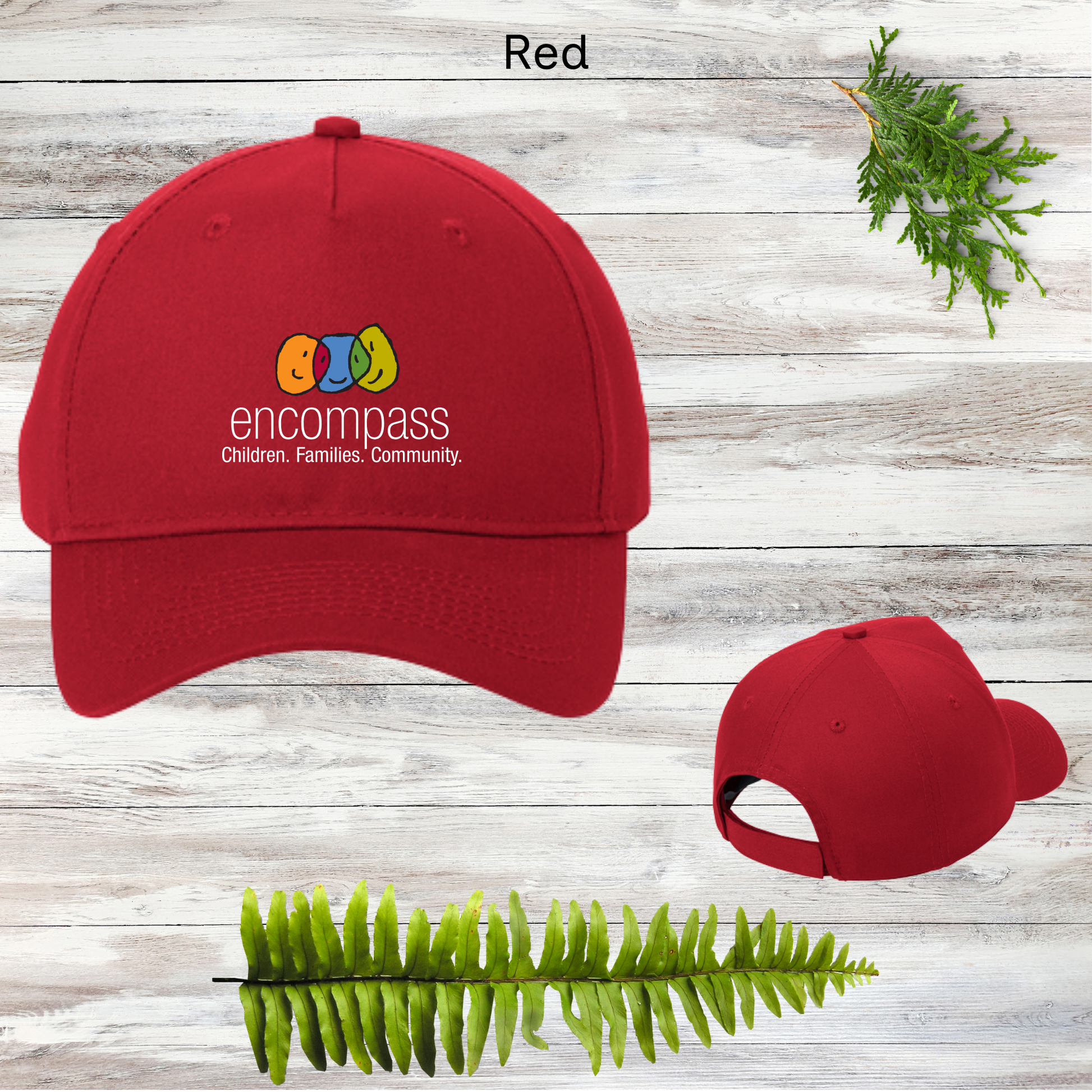 Shady Encompass ball cap in the sturdy cotton twill. Encompass partners with families to build healthy foundations for children.